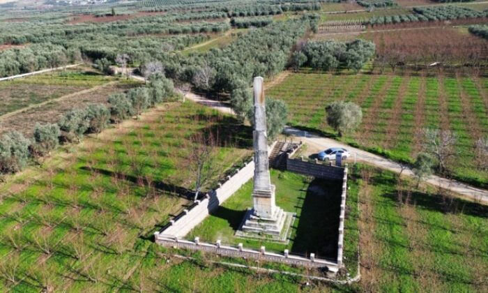 Bursa‘nın İznik ilçesinde bulunan Roma dönemine ait mezar anıtı olan 2 bin yıllık dikilitaş, şeftali bahçelerinin ortasındaki ihtişamıyla turistlerin ilgi odağı haline geldi.