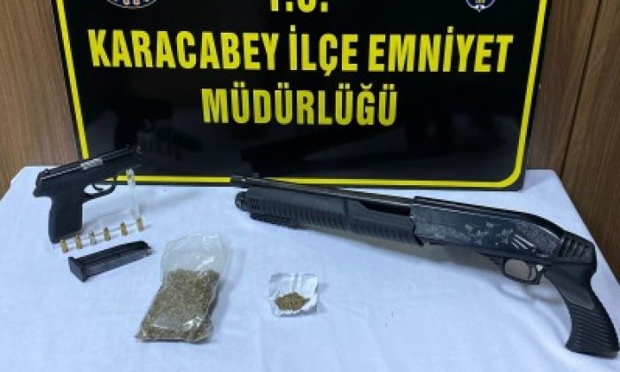 Karacabey İlçe Emniyet Müdürlüğü Asayiş Büro Amirliği ekipleri, ilçede uyuşturucu madde satan ve kullanan şahıslara yönelik operasyon düzenledi. Polis ekipleri şüphe üzerine M.E.T. (33), E.K. (25) ve G.B. (40) isimli şahısların içerisinde bulunduğu aracı durdurdu. Ekipler, durdurdukları araçta şeffaf poşet içerisinde 40 gram sentetik kannabinoid (bonzai) maddesi ele geçirdi. Ayrıca araçta bulunan şüpheli G.B.’nin ikametinde yapılan aramada 50 gram sentetik kannabinoid (bonzai) maddesi, 1 adet siyah tabanca ve 7.65 mm çapında 6 adet fişek, 1 adet pompalı tüfek ele geçirildi.