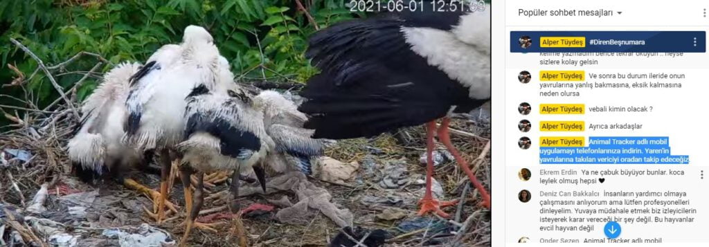 Yaren leyleğin gelişimi diğer 4 kardeşine göre daha yavaş olan 5. yavrusu, takipçilerini harekete geçirdi. #DirenBeşnumara hashtagi ile açılan sayfaya kısa sürede binlerce yorum yapıldı. Yuvanın canlı görüntülerinin izlendiği sayfada doğa severler yavruya insan eliyle müdahale edilip beslenerek diğer yavruların seviyesine gelmesi için destek verilmesini isterlerken, yavrunun gelişiminin normal olduğunu savunan uzmanlar ise yuvaya çok acil bir durum olmadıkça müdahale etmenin hayvanların doğal gelişimlerine zarar vereceğini savundu.