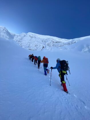 Zorlu eğimlerde açılan izler, lider değişimleri ve kontrollü tempo uygulaması sayesinde ekip güvenli bir şekilde zirve hattına ulaştı. Tırmanış boyunca hipotermi riskine karşı sık molalar planlı şekilde verildi.