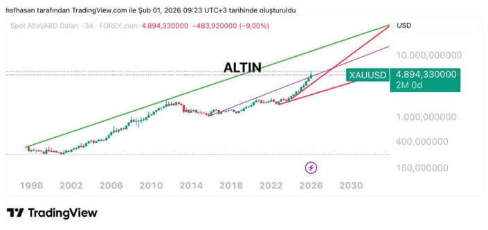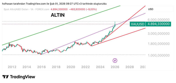 Logaritmik grafiklerde aşırı yüksek hedefler ekranda gözükebilir. Bu, altında olağanüstü bir hedeftir. Savaş fiyatlaması olarak da yorumlanabilir. Eğer bu düzeltme şubat ayı için 4655 seviyesi kırılmadan tamamlanırsa trend bozulması yoktur. Aksi takdirde 4500-4300 seviyesi gündeme gelecektir.