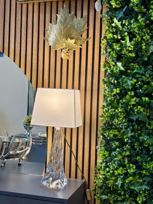 Kristal gövdesiyle zarafeti ve ağırlığı bir arada yansıtan abajur, mekâna sofistike bir dokunuş katıyor.