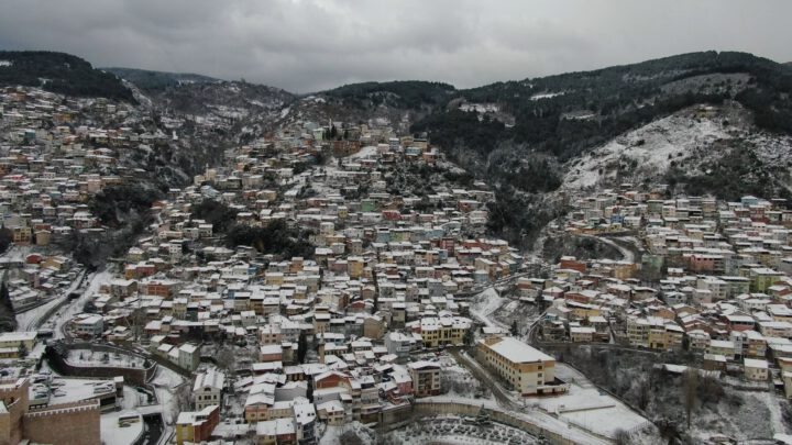 Bursa’da sabah saatlerinde etkili olan kar yağışı sonrası şehir merkezi beyaza büründü. Bursa’nın tarihi yapıları başta olmak üzere birçok yerleşim yeri drone ile görüntülendi.