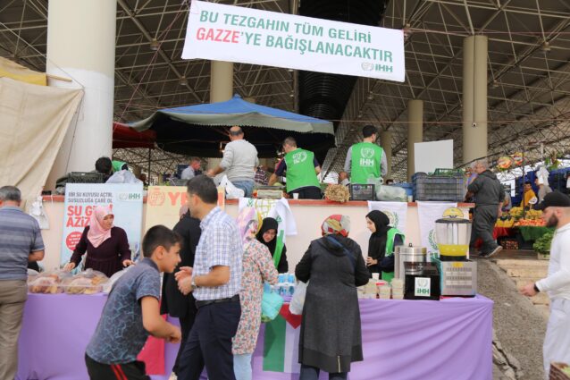 Bursa’nın Gürsu ilçesi kapalı pazar alanına tezgah açan vatandaşlar, tezgahta satılan ürünlerin gelirini yardıma muhtaç Gazzelilere bağışladı. Salatasından marula, havucundan soğanına kadar bir çok sebze ve meyvenin yer aldığı Mehmet Üney’in tezgahı, Gürsulular tarafından da büyük ilgi gördü. Ayrıca ev hanımlarının yaptığı kek, poğaça ve kısır gibi ürünlerin de geliri Gazze’deki insanlar için bağışlandı.