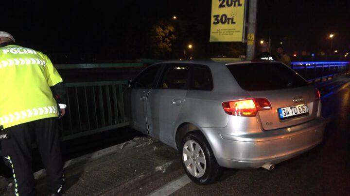 Bursa’da yağış nedeniyle kayganlaşan yolda kontrolden çıkarak bariyerlere saplanan otomobil 5 metrelik alt geçitte asılı kaldı. Sürücü kaza sonrası kendi imkanlarıyla otomobilden çıkarak olay yerinden kaçtı.