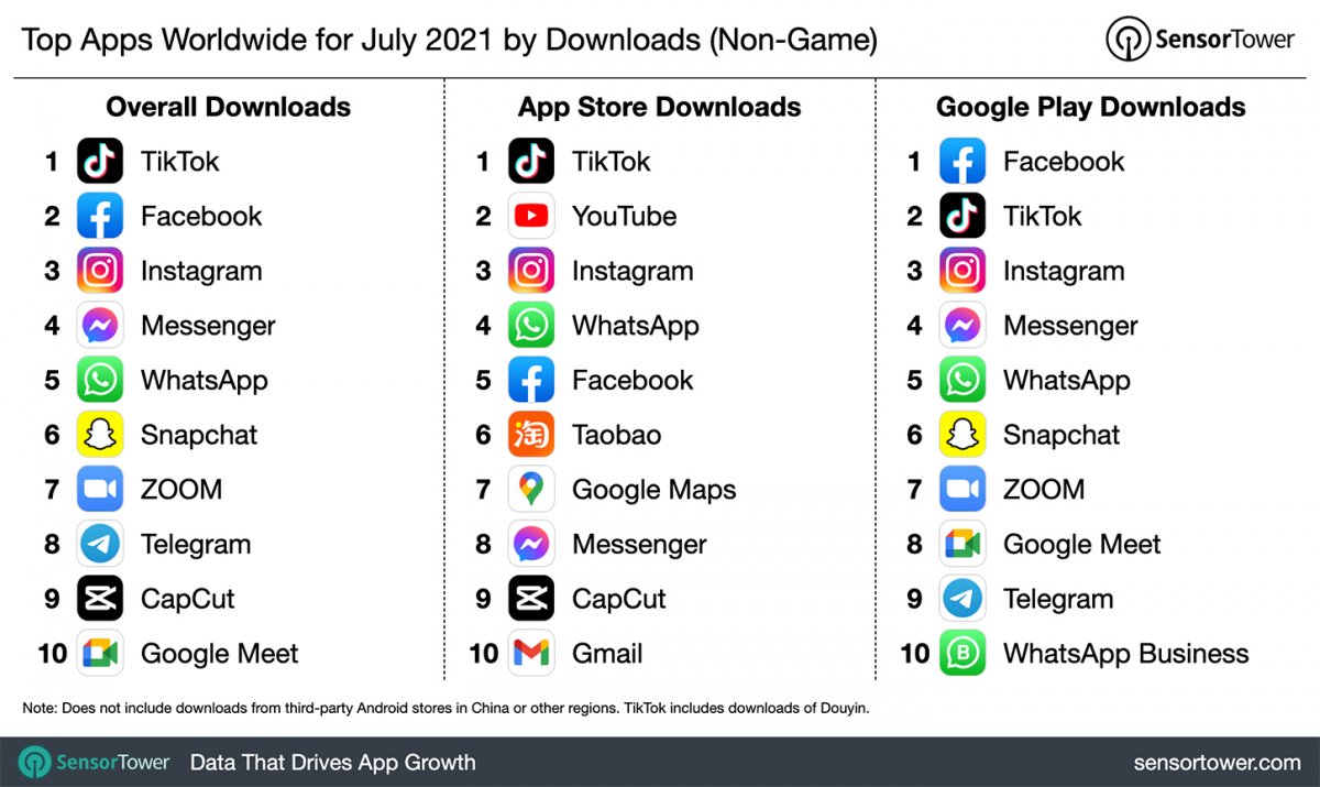 Uygulama istatistiklerini takip eden araştırma şirketi Sensor Tower’ın, 2021 temmuz ayına ait raporunu yayınladı.