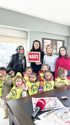 Renkli görüntülerin yaşandığı ziyarette, 20 minik Kent Bursa Gazetesi Sorumlu Yazı İşleri Müdürü Yasemin Özkerem ve Editörler Sema Nur Çinar ve İrem Erbaş’ın 10 Ocak Çalışan Gazeteciler Günü’nü kutladı.