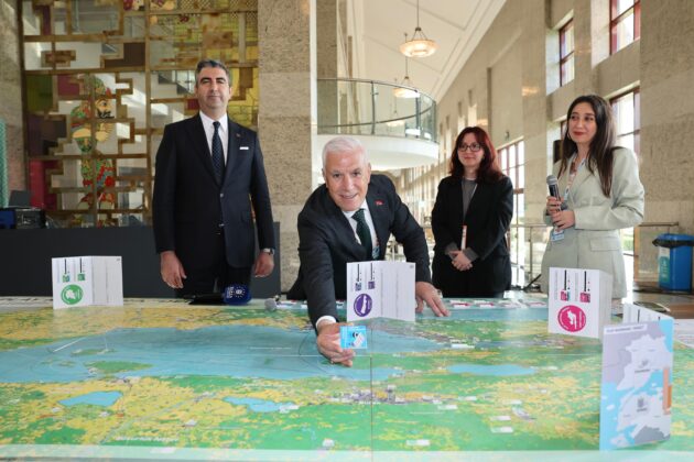 MARUF’25 kapsamında düzenlenen ‘Play Marmara Denizi’ etkinliğine de katılan Başkan Mustafa Bozbey, oyunu Gebze Belediye Başkanı Zinnur Büyükgöz ve Kartal Belediye Başkanı Gökhan Yüksel ile birlikte oynadı. ‘Temiz Üretim, Yenilikçi Uygulamalar’ kartını seçen Başkan Mustafa Bozbey, “Marmara Denizi’ne sahip çıkmalıyız. Marmara’nın etrafında yoğun sanayi yapılanması var. Buna bağlı olarak da 30 milyonun üzerinde bir nüfus Marmara Bölgesi’nde yaşıyor. Bu da Marmara Denizi’ne inanılmaz bir kirlilik yükü getiriyor. Bunu önlemenin yolu, Marmara’ya kıyısı olan tüm belediyelerin İleri Biyolojik Arıtma tesisi kurmasından geçiyor. Böylece Marmara Denizi’ne arıtılmış sular salınmış olacak. Marmara Denizi’ni, tüm ülke olarak el ele vererek kurtarmalıyız” dedi.