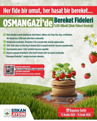 Proje şartlarına göre her bir üreticiye 5 bin adet çilek fidesi teslim edilecek. Fidelerin maliyetinin yüzde 50’si Osmangazi Belediyesi tarafından karşılanacak. Başvuruda bulunacak üreticilerin 2025-2026 yılına ait Çiftçi Kayıt Sistemi (ÇKS) kaydının bulunması ve arazilerinin Osmangazi ilçe sınırları içinde olması gerekiyor. Destekten aynı haneden yalnızca 1 (bir) kişi faydalanabilecek.