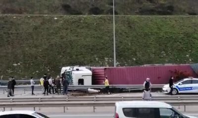 Bursa’da kontrolden çıkarak vince çarpan tır devrildi. Kazada tır şoförü...